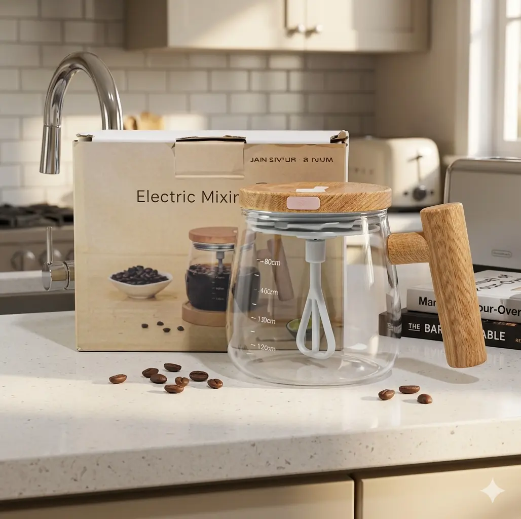 Diseño Premium y Sostenible: El cuerpo de vidrio resistente te permite apreciar la mezcla en todo momento, mientras que su asa con acabado tipo bamboo aporta un toque moderno y natural a tu escritorio o cocina. 🪵✨