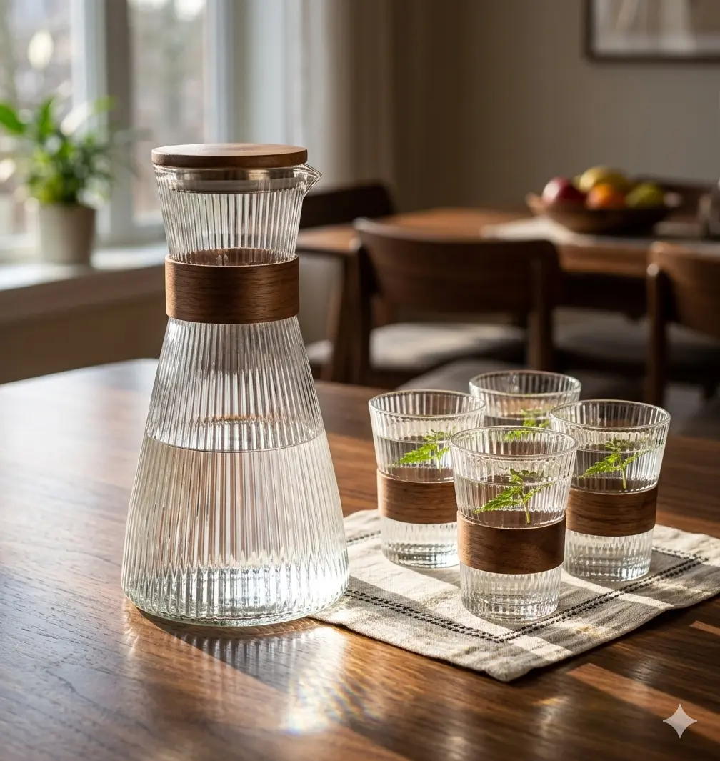 Servir bebidas nunca fue tan elegante. El Set Jarra + 5 Vasos es el complemento ideal para la mesa familiar, tertulia de amigos o cualquier ocasión especial.