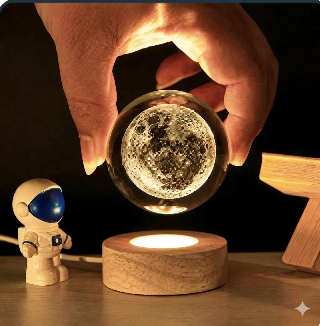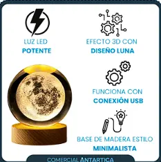 Un Espectáculo Visual en tu Mesa: Gracias a su impresionante efecto 3D, proyecta una imagen detallada de la luna que parece cobrar vida, cautivando a todos los que la miran. 🌕