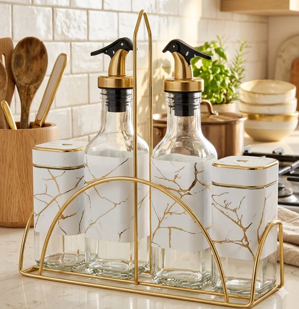 🧪 Funcionalidad Superior: Incluye 2 botellas con pico vertedor de precisión para evitar derrames y 2 frascos herméticos ideales para mantener tus especias siempre frescas.